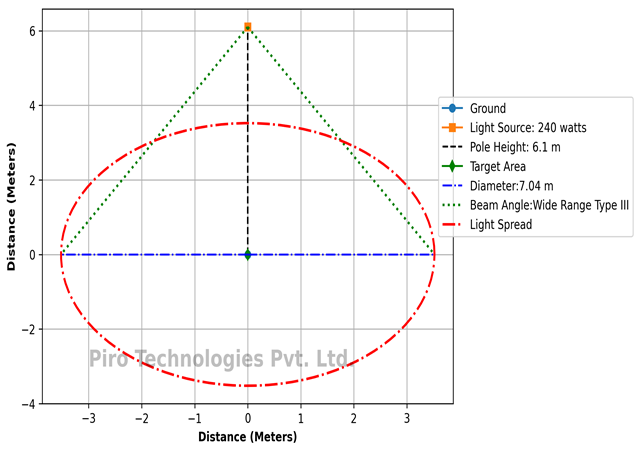 1. Fixture placed at 5 to 20 feet height, ensuring perfect beam alignment and coverage from 210 feet